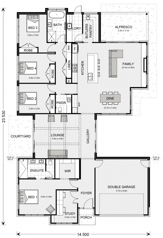 For optimal site use, this design is best positioned on sites with the north aspect towards the side of the home, providing sustainable and comfortable living conditions throughout the year.